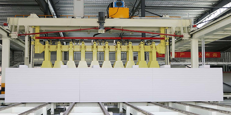 切割機組是加氣板材生產(chǎn)線的核心設(shè)備,用于切割不同尺寸的坯體,滿足超精確砌塊和板材的切割精度要求,生產(chǎn)板材時配合板材進給刮刀,調(diào)節(jié)側(cè)面切割機的刮刀行程,可以滿足不同尺寸制品的混合切割。